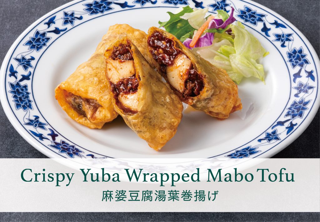 押し豆腐の麻婆あんを湯葉で包み、サクっと揚げました。本格派の味わいを気軽にお楽しみいただけます。