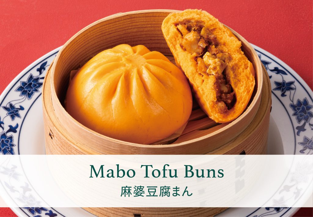 重慶飯店の麻婆醤と豆腐入りのあんをオレンジ色の皮でくるんだ、見た目にもインパクトのある饅頭です。